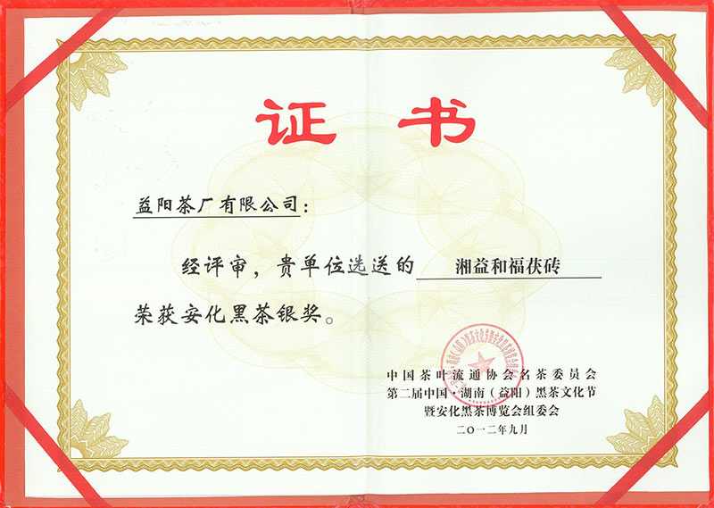 2012年 第二屆中國湖南黑茶文化節銀獎(和福)